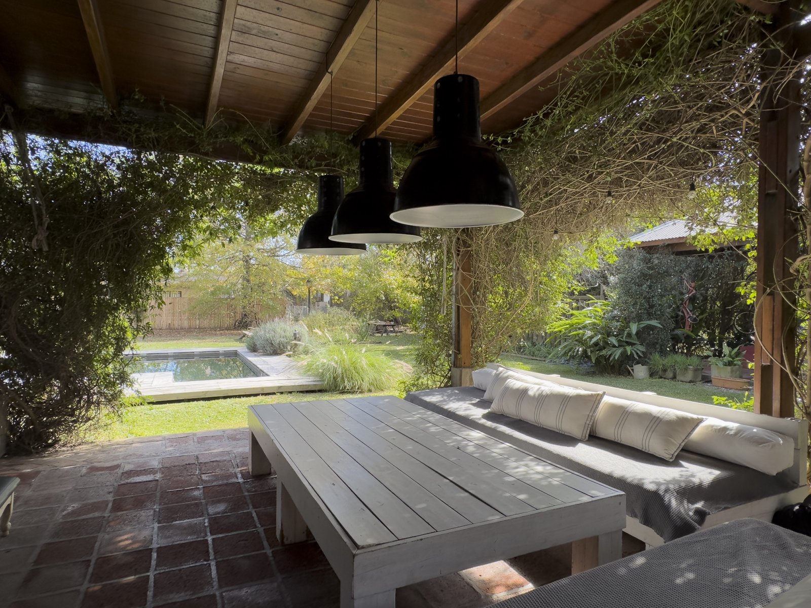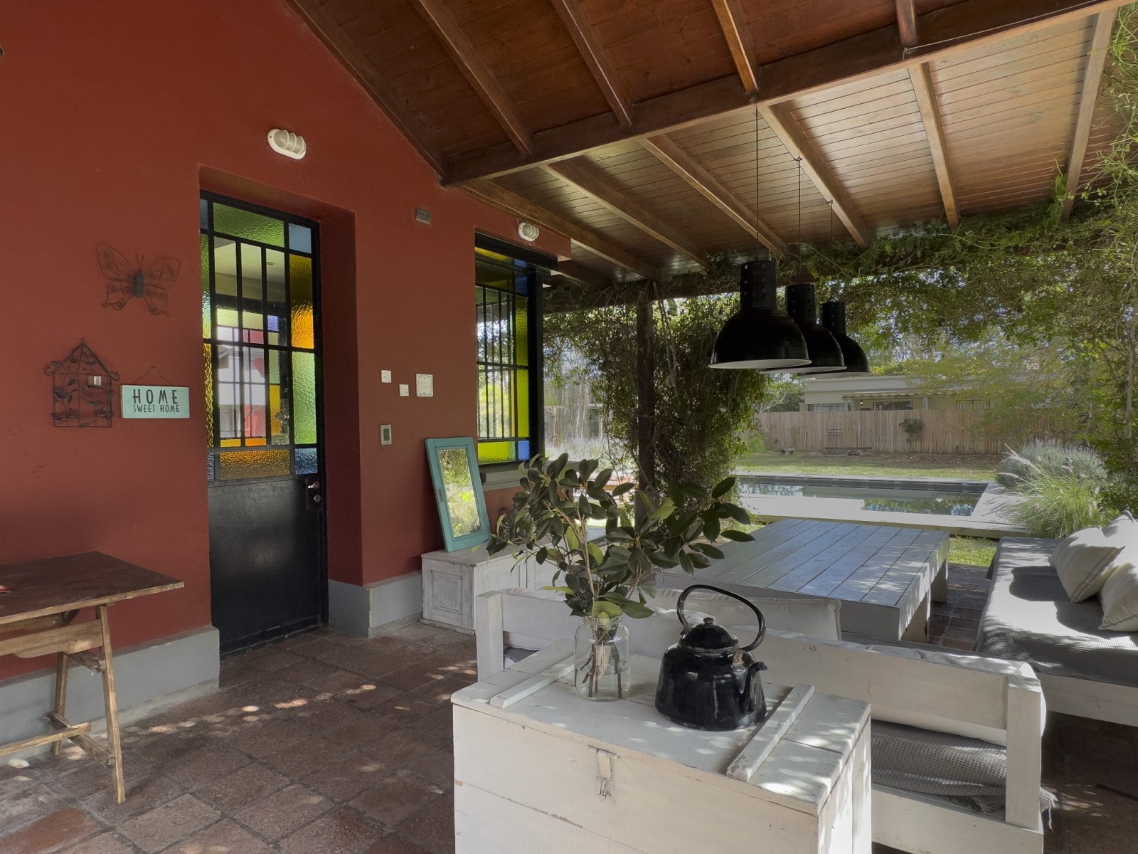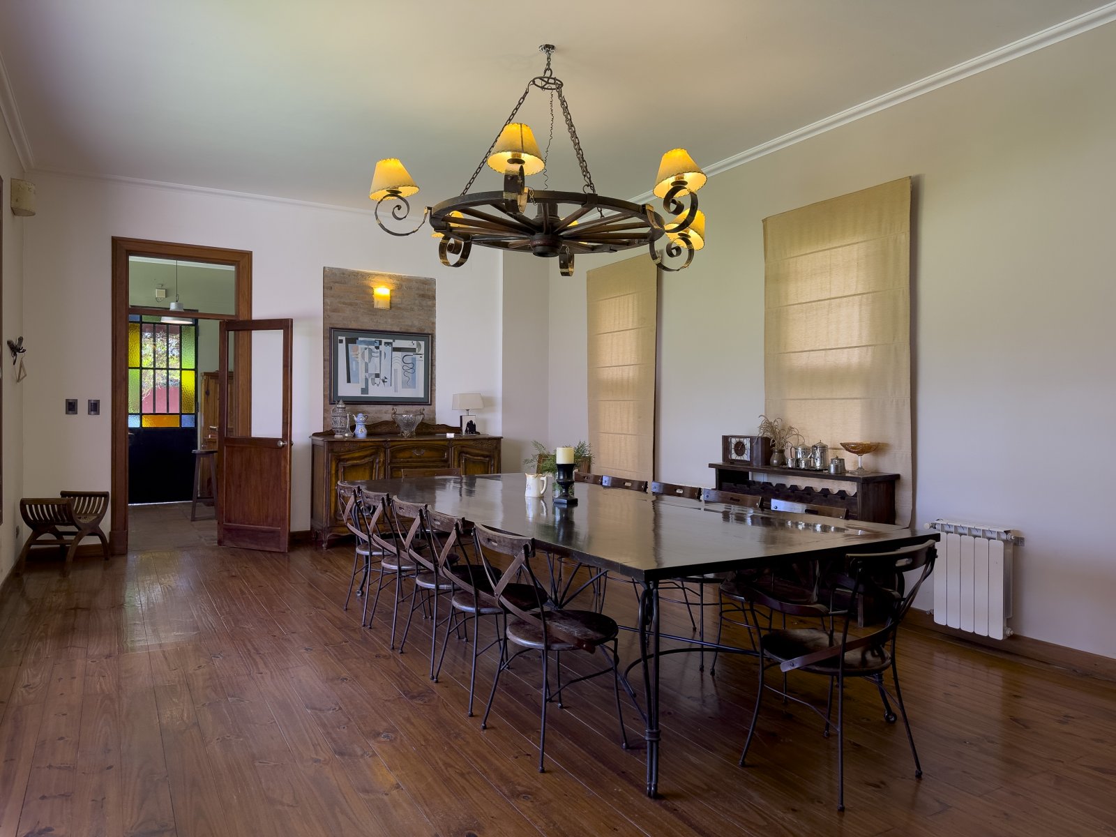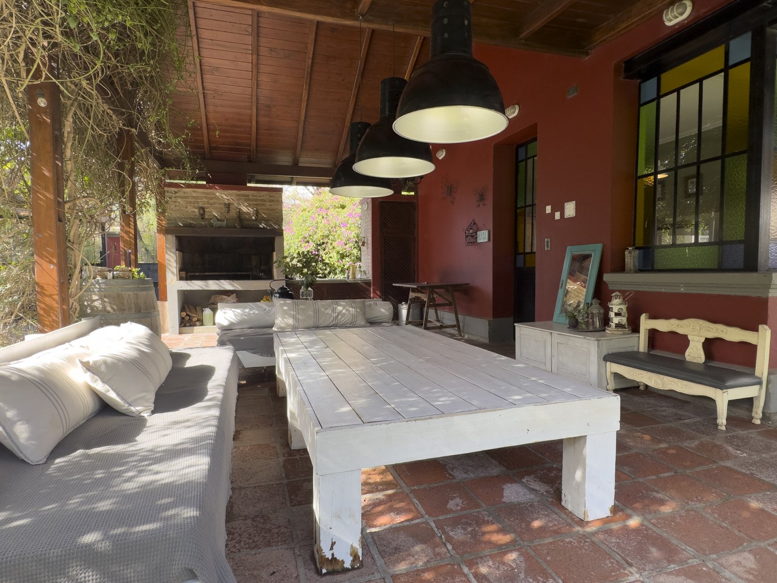 Alquiler Roldán. Guaraníes 417 Superficie del terreno: 1700 m2 Capacidad: 13 pax Casa de estilo campestre amueblada, muy luminosa, amplia, con muchos detalles de buen gusto. Hall de ingreso. Gran comedor amueblado con mesa y sillas para 10 personas, ventanas al jardín y mueble vajillero. Living amplio con hogar a leña, provisto de sillones y mesa ratona. Biblioteca empotrada en la pared con escritorio. Cocina totalmente amueblada con salida a la galería. Utensilios y elementos varios, muy completa para más de 10 personas. Toalitte. Gran jardín parquizado con piscina y árboles añejos . Lavadero. Cuarto de servicio con baño. Planta alta: Cuatro dormitorios con placares, totalmente amueblados. Baño completo. Dormitorio principal en suite, con vestidor. Calefacción con radiadores. Alarma. Piletero y jardinero incluido. Consultar empleada doméstica Valor alquiler: U$S 1800