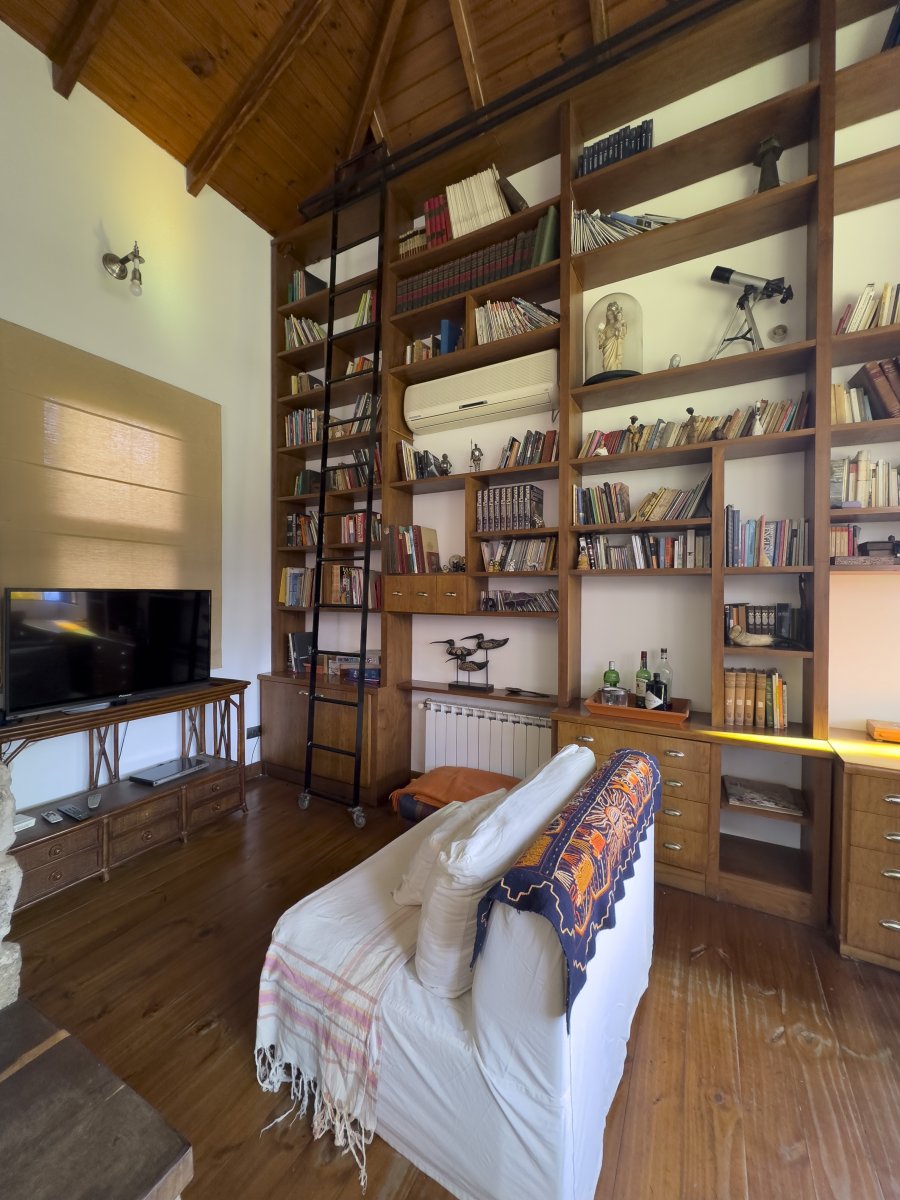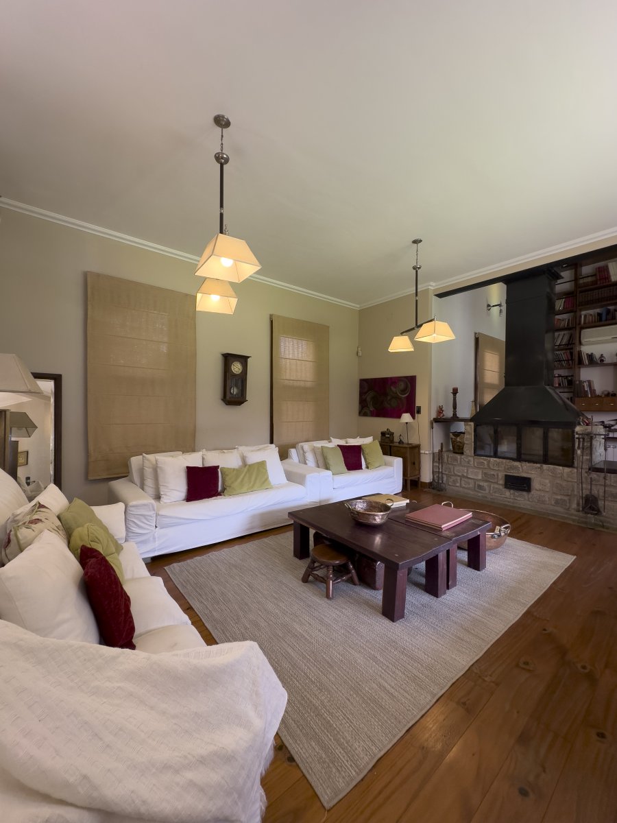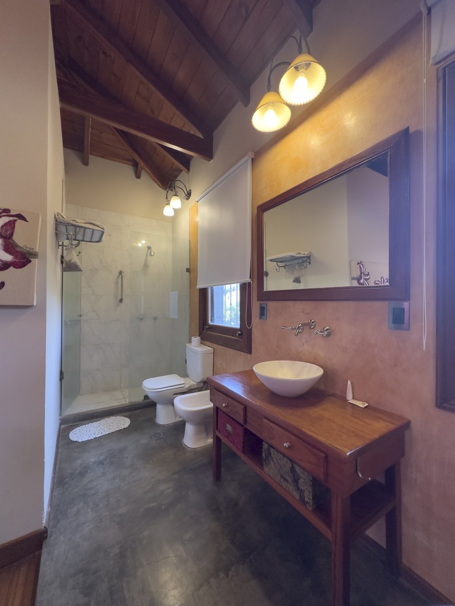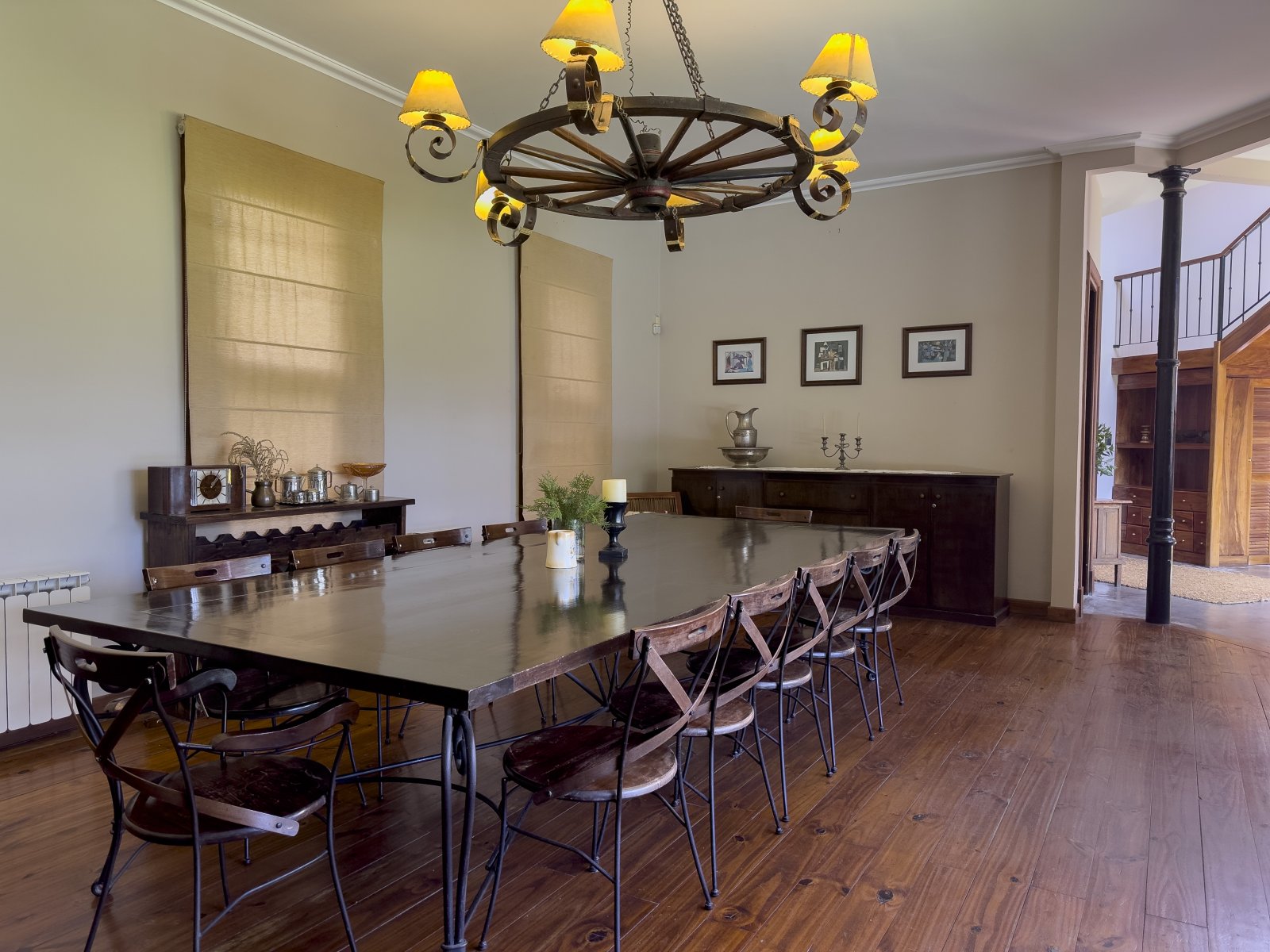 Alquiler Roldán. Guaraníes 417 Superficie del terreno: 1700 m2 Capacidad: 13 pax Casa de estilo campestre amueblada, muy luminosa, amplia, con muchos detalles de buen gusto. Hall de ingreso. Gran comedor amueblado con mesa y sillas para 10 personas, ventanas al jardín y mueble vajillero. Living amplio con hogar a leña, provisto de sillones y mesa ratona. Biblioteca empotrada en la pared con escritorio. Cocina totalmente amueblada con salida a la galería. Utensilios y elementos varios, muy completa para más de 10 personas. Toalitte. Gran jardín parquizado con piscina y árboles añejos . Lavadero. Cuarto de servicio con baño. Planta alta: Cuatro dormitorios con placares, totalmente amueblados. Baño completo. Dormitorio principal en suite, con vestidor. Calefacción con radiadores. Alarma. Piletero y jardinero incluido. Consultar empleada doméstica Valor alquiler: U$S 1800
