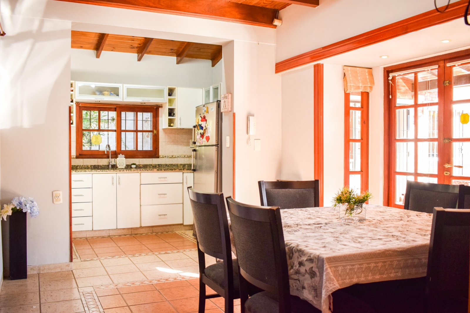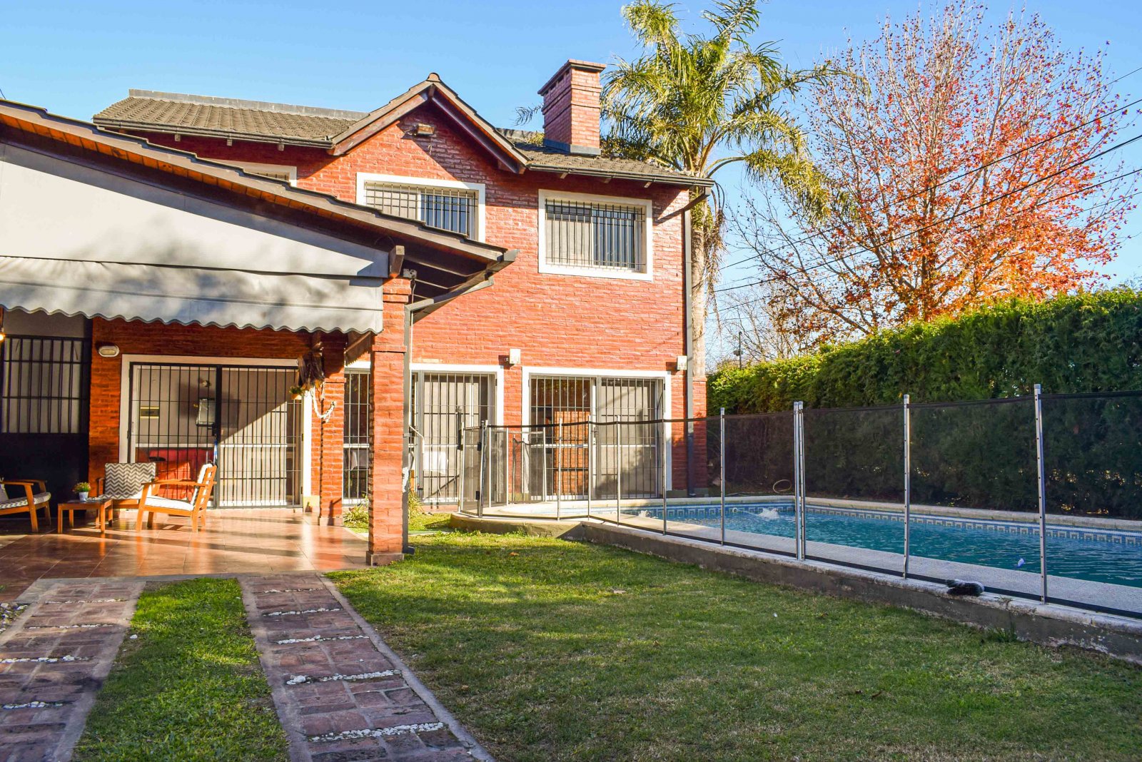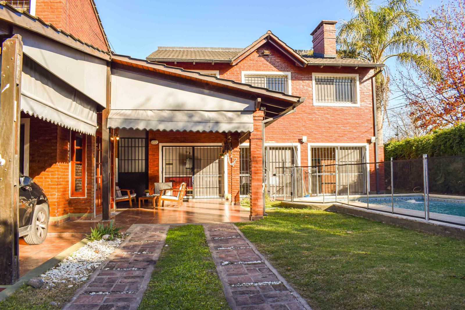 Derqui 8029 Medidas del terreno: 23 m x 20 m Superficie cubierta: 267 m2 Superficie semicubierta: 30 m2 Estado: Excelente Ubicación: a una cuadra de calle Mendoza, cerca del Colegio Inglés, Club Old Resian y Caranchos. Próximo al centro comercial de calle Córdoba de Fisherton. Líneas de transporte K y 142. Zona tranquila, con seguridad paga en el barrio, casas con jardín, agradable entorno. Terreno tapialado y parquizado al frente en esquina. Portones automatizados para ingreso vehicular y puerta alternativa para ingreso peatonal. Cochera para 4 autos. Piscina de 9 m x 4 m con bomba, cercada. P.Baja: living en desnivel con techo de madera en doble altura. Comedor integrado a la cocina y conectado a la galería cubierta por gran puerta balcón de madera y vidrio. Cocina completa con alacena, mesada y bajo mesada. Lavadero amplio con bajomesada y salida al patio interno de la casa con galería y césped. Dormitorio con placar. Baño con antebaño y bañera. P.A.: hall tipo pasarela con biblioteca amurada. Dormitorio con placar y techo de madera. Baño con receptáculo y antebaño. Dormitorio con vestidor y piso flotante. Escritorio con ventanas al jardín. Quincho: Gran quincho con ventanales de vidrio con vista al jardín y pileta. Parrillero, mesada, bajomesada y baño P.A del quincho: gran espacio para usos múltiples. Alarma. Aberturas de madera de cedro con mosquitero, rejas, celosías y black out. Techos de madera. Todos los ambientes poseen aire acondicionado Split frío-calor. Valor: $1.600.000 con actualizaciones cada 4 meses bajo el ICL