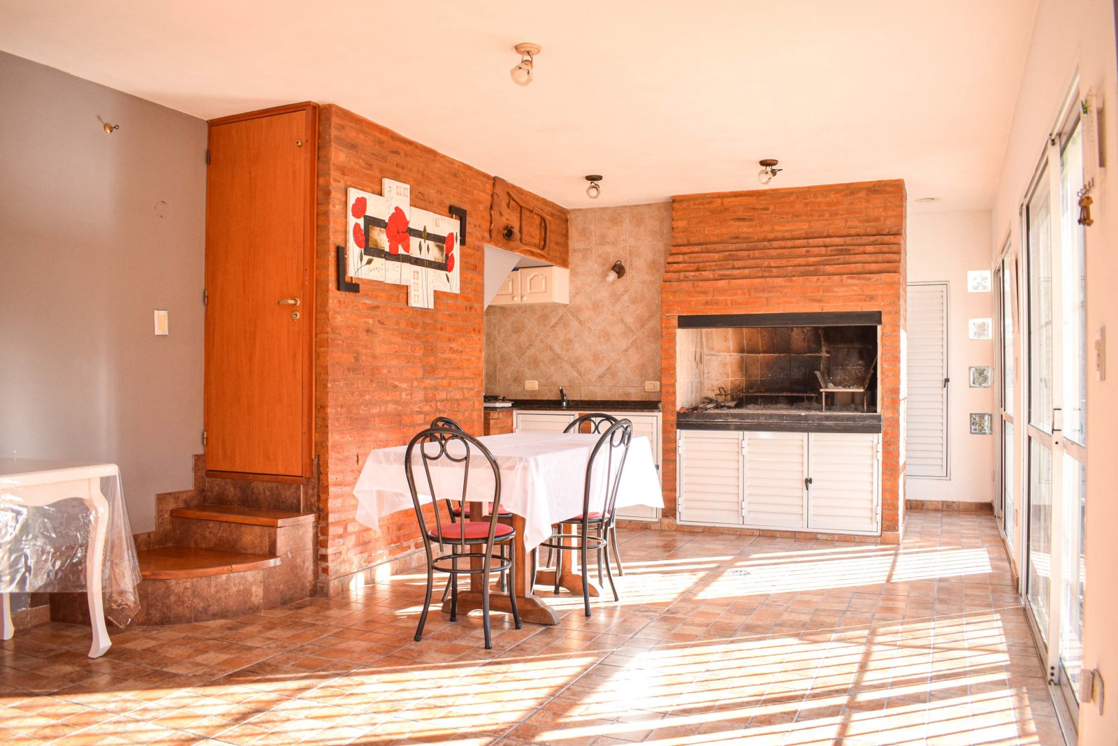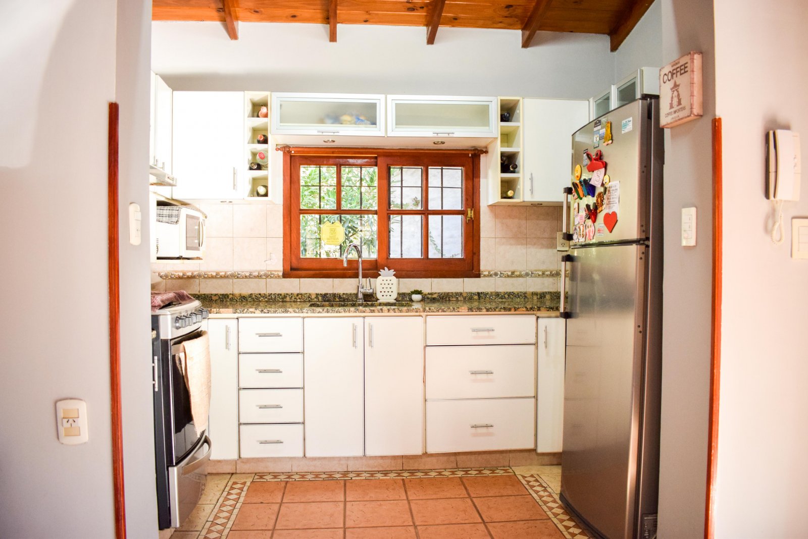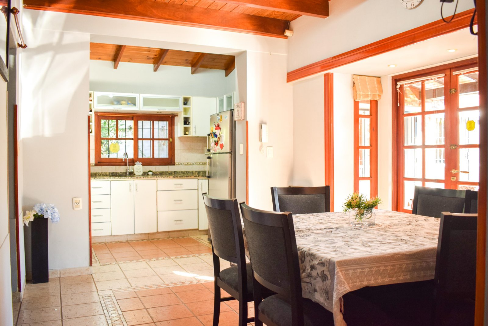 Derqui 8029 Medidas del terreno: 23 m x 20 m Superficie cubierta: 267 m2 Superficie semicubierta: 30 m2 Estado: Excelente Ubicación: a una cuadra de calle Mendoza, cerca del Colegio Inglés, Club Old Resian y Caranchos. Próximo al centro comercial de calle Córdoba de Fisherton. Líneas de transporte K y 142. Zona tranquila, con seguridad paga en el barrio, casas con jardín, agradable entorno. Terreno tapialado y parquizado al frente en esquina. Portones automatizados para ingreso vehicular y puerta alternativa para ingreso peatonal. Cochera para 4 autos. Piscina de 9 m x 4 m con bomba, cercada. P.Baja: living en desnivel con techo de madera en doble altura. Comedor integrado a la cocina y conectado a la galería cubierta por gran puerta balcón de madera y vidrio. Cocina completa con alacena, mesada y bajo mesada. Lavadero amplio con bajomesada y salida al patio interno de la casa con galería y césped. Dormitorio con placar. Baño con antebaño y bañera. P.A.: hall tipo pasarela con biblioteca amurada. Dormitorio con placar y techo de madera. Baño con receptáculo y antebaño. Dormitorio con vestidor y piso flotante. Escritorio con ventanas al jardín. Quincho: Gran quincho con ventanales de vidrio con vista al jardín y pileta. Parrillero, mesada, bajomesada y baño P.A del quincho: gran espacio para usos múltiples. Alarma. Aberturas de madera de cedro con mosquitero, rejas, celosías y black out. Techos de madera. Todos los ambientes poseen aire acondicionado Split frío-calor. Valor: $1.600.000 con actualizaciones cada 4 meses bajo el ICL