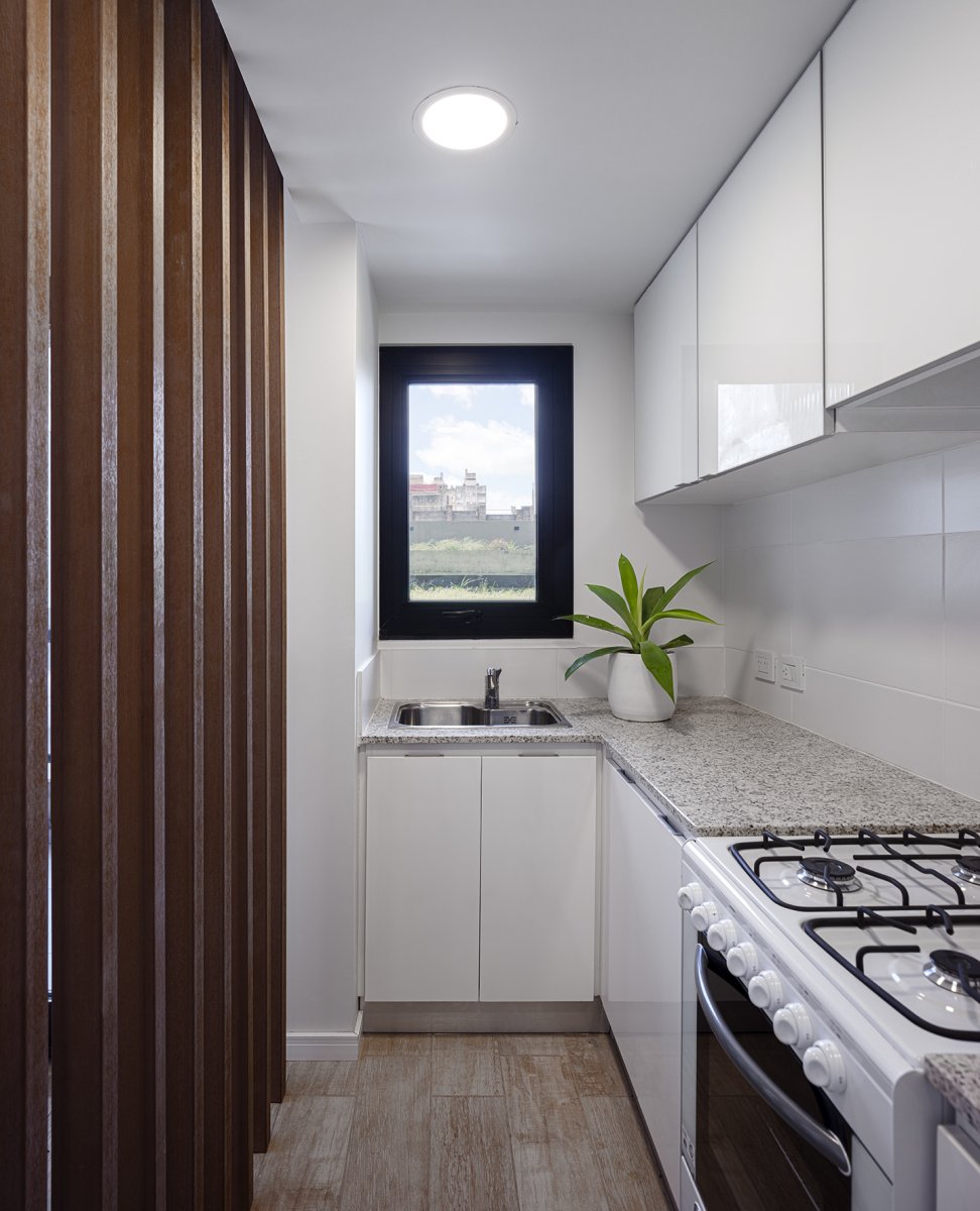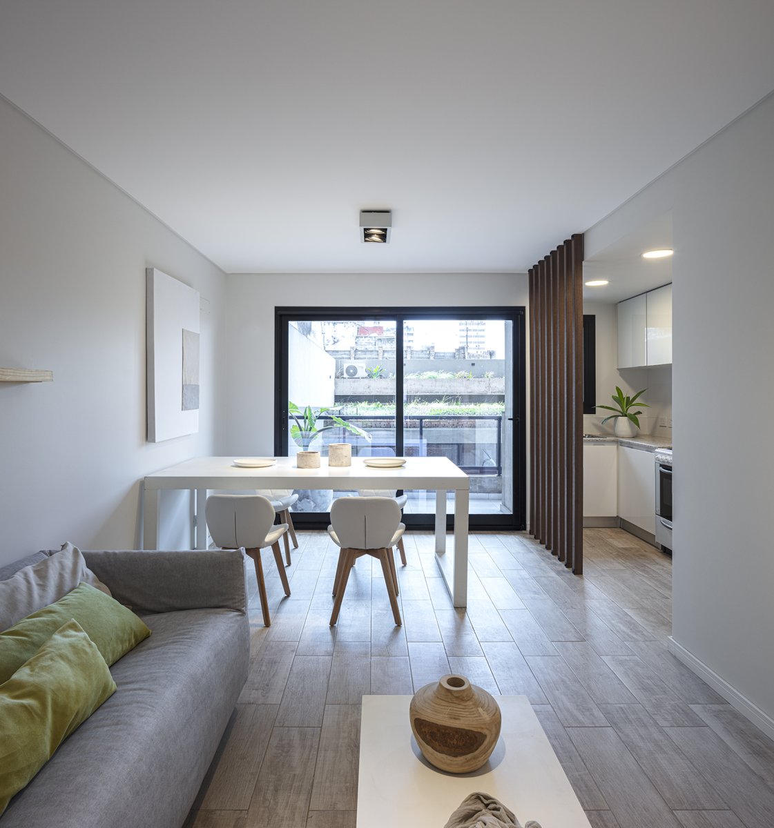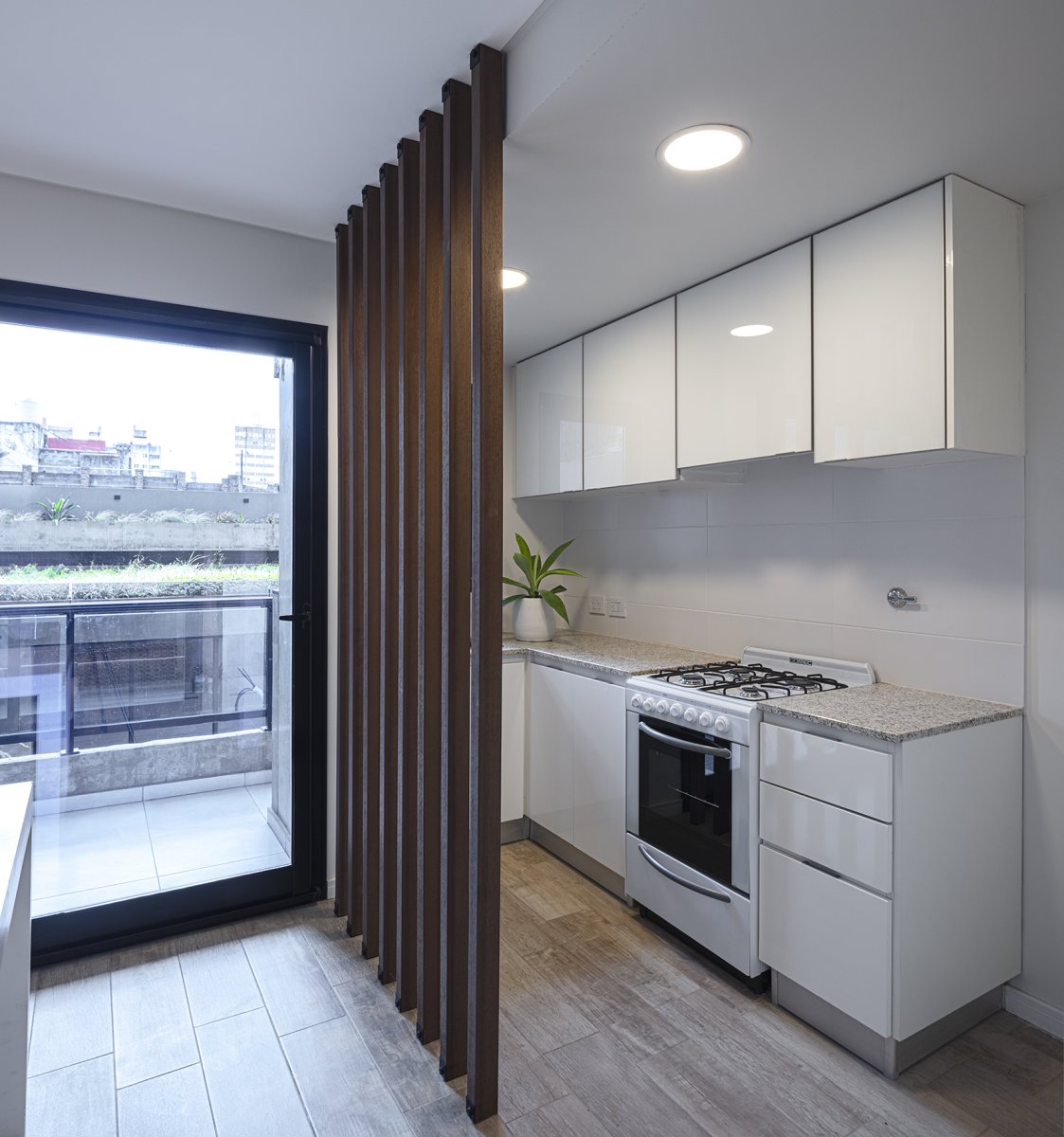 Departamento en venta de 1 dormitorio en el centro! Sarmiento 1225 piso 2 dpto. 01 Departamento de 1 dormitorio al frente, ventilación cruzada, baño, cocina completa, living comedor y lavadero 49m2 + 2 balcones 10,5 m2 Total exclusivo de 59,9 m2 en pleno centro de la ciudad, a cuadras de las peatonales, se alza este nuevo proyecto lindando al emblemático Edificio Lavarden. Este edificio se compone de una única torre con 11 pisos y azotea exclusiva para las unidades del último piso. Además cuenta con un solárium con un espacio semicubierto con parrillero, dos niveles de cocheras, bicicleteros y bauleras. CARACTERISTICAS GENERALES: Hall ingreso con control de acceso y sistema de video monitoreado. Ascensores última generación, diseño moderno, puertas automáticas, re-vestimiento de ac.inox y espejos tonalizados y con sistema de frecuencia variable. Envolvente (mampostería, carpintería general y techos materializados según requerimiento de Eficiencia Energética. Unidades con fina terminaciones de yesería en todos los ambientes. Pisos de porcelanatos. Amoblamientos de cocina completos con bajos mesadas y alacenas de 1ra calidad. Baños y cocina totalmente equipados. Aberturas de madera enchapada en roble. Pre instalación para colocación split. Abertura de aluminio sistema hydro, modelo ha62 con vidrios según requerimiento de eficiencia energética. Cortinas de enrollar automatizadas. Valor: U$S 140.905