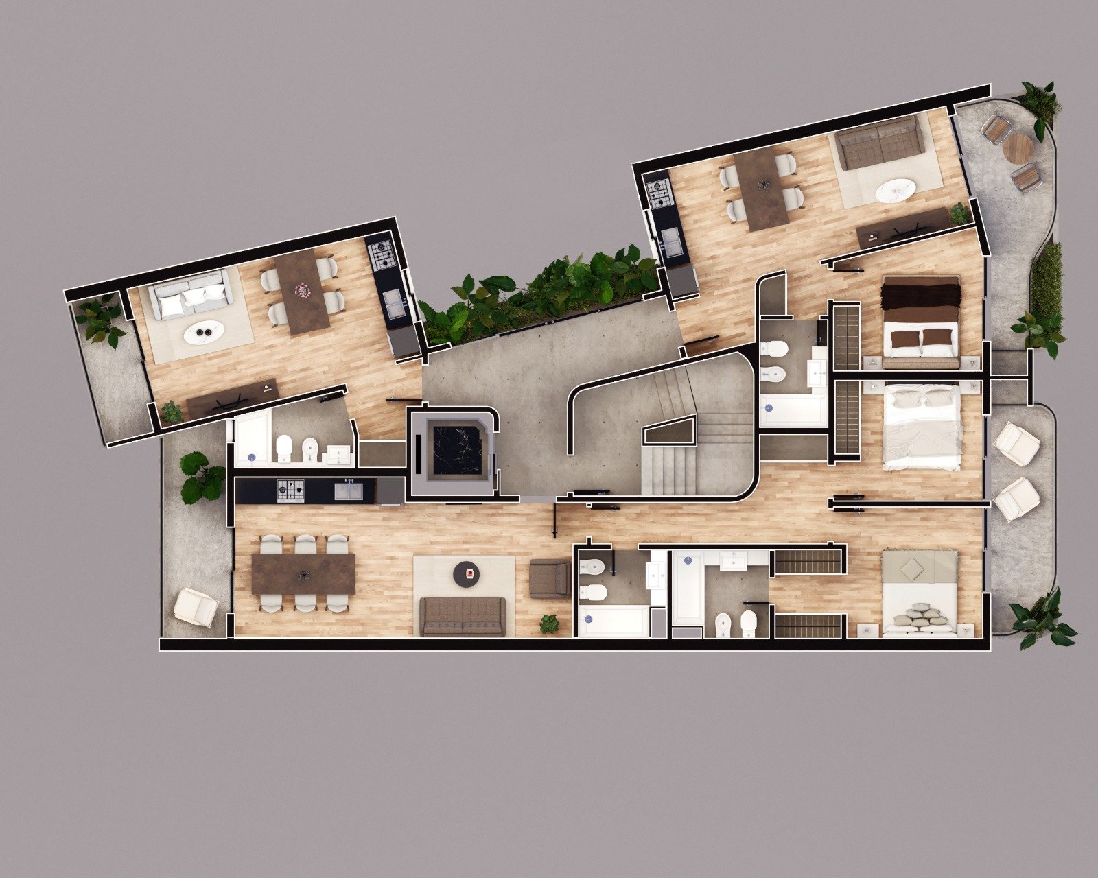 Rodríguez 1331 – Piso 6 Departamento de 1 dormitorio, al frente, con balcón y terraza exclusiva. Superficie: 45 m². Valor: U$S 96.440. Entrega: Febrero 2027. Financiación: 30% al boleto y saldo financiado. Edificio de PB y 6 pisos, con local comercial y cocheras. Unidades amplias, con ventilación cruzada, diseño sostenible y bajo consumo energético. Características del departamento: Carpintería de aluminio negro anodizado Pisos de porcelanato y revestimientos de primeras marcas Cocina con mesada de granito, muebles laminados y pileta de acero inoxidable Baño con sanitarios y griferías de calidad Terminaciones en yeso y pintura de primera marca Calefón/termotanque primera línea